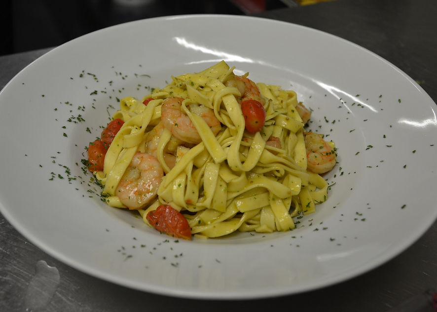 Pâte fraîche Tagliatelle aux crevettes, tomates cerise et basilic